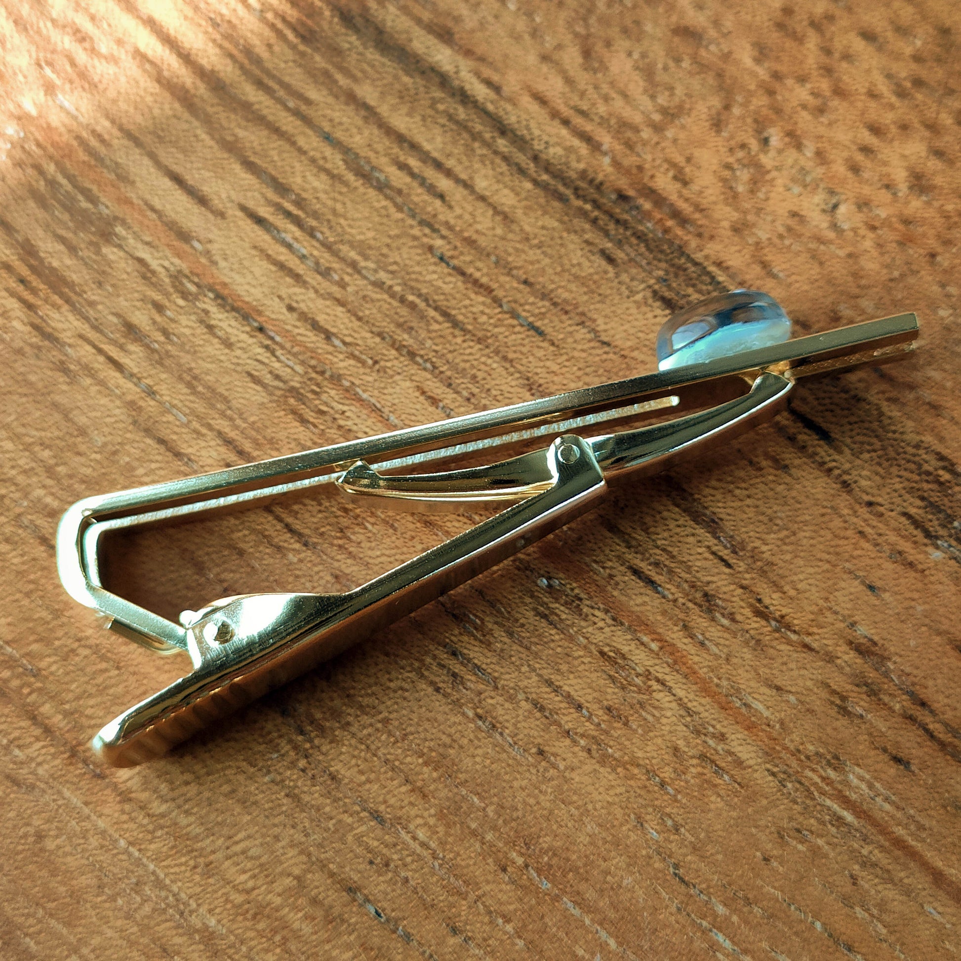 男性用のネクタイ留めですが、ブローチとしても利用できます。キャッチのギザギザとした部分を引っ張りながらピンを抜いてください。ネクタイとシャツを貫通させて、裏側の金具で留めます。