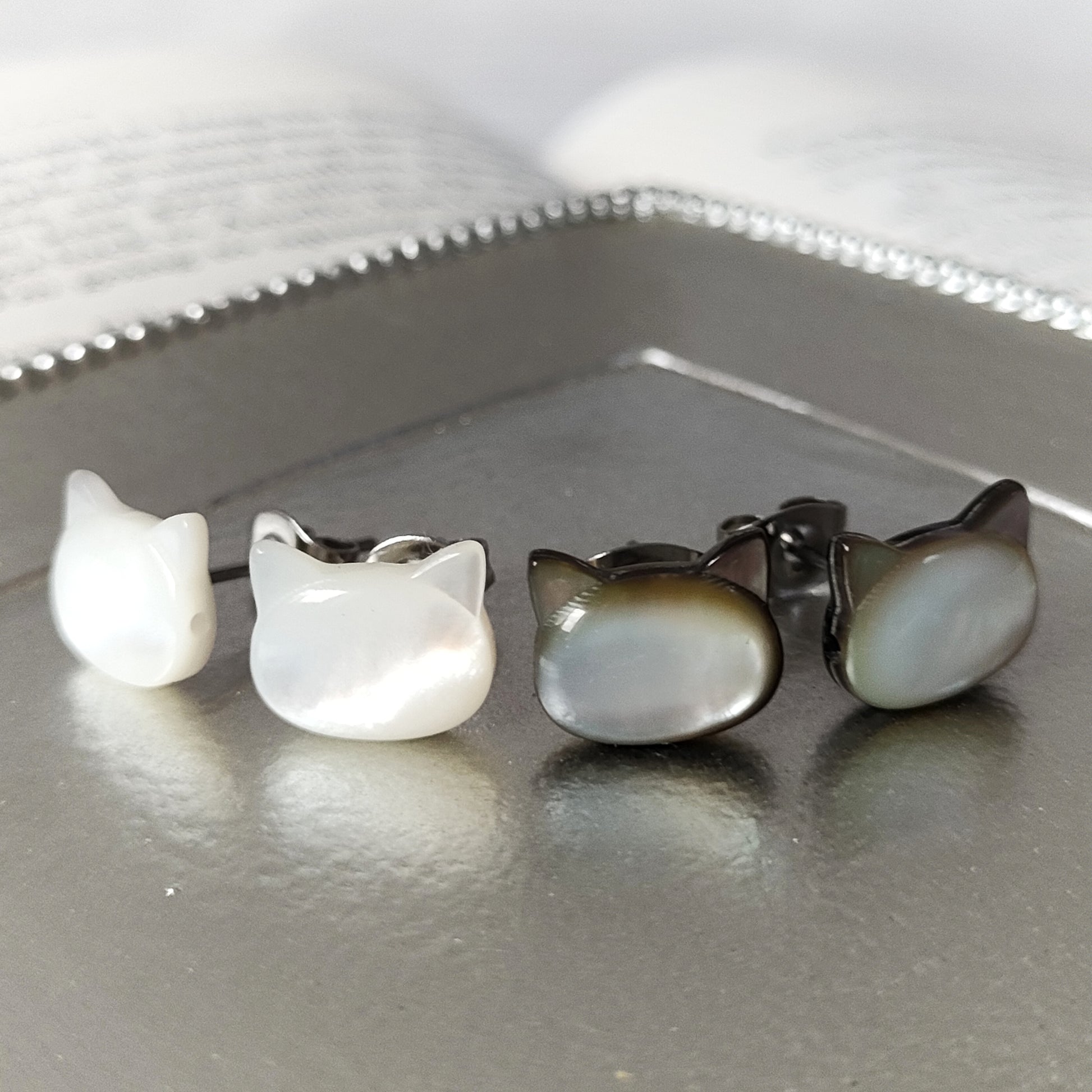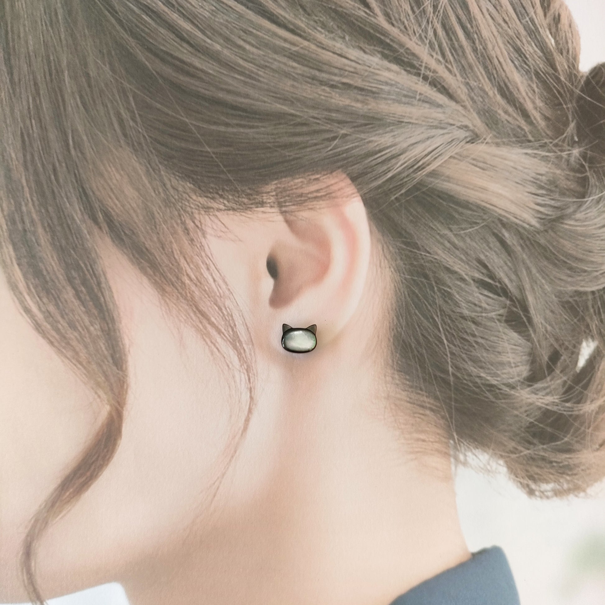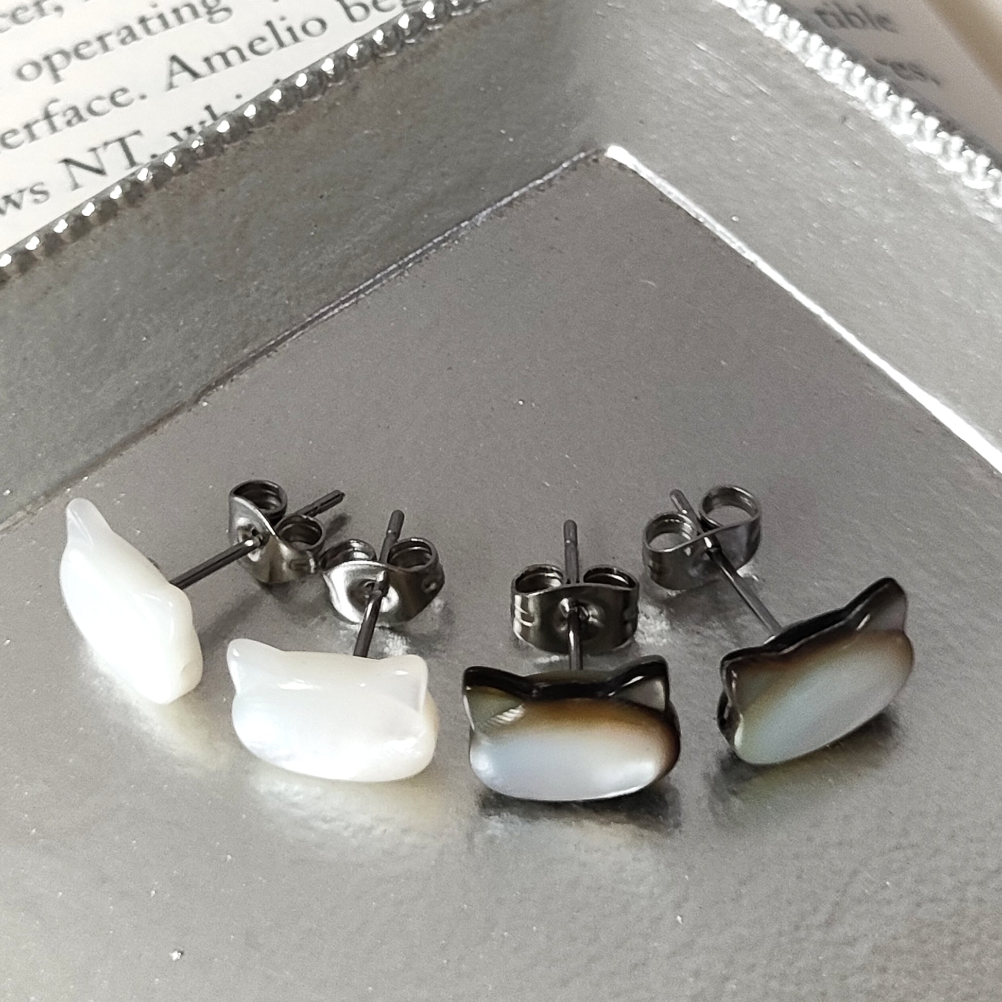 マザーオブパールの白猫・黒猫 ピアス・イヤリング