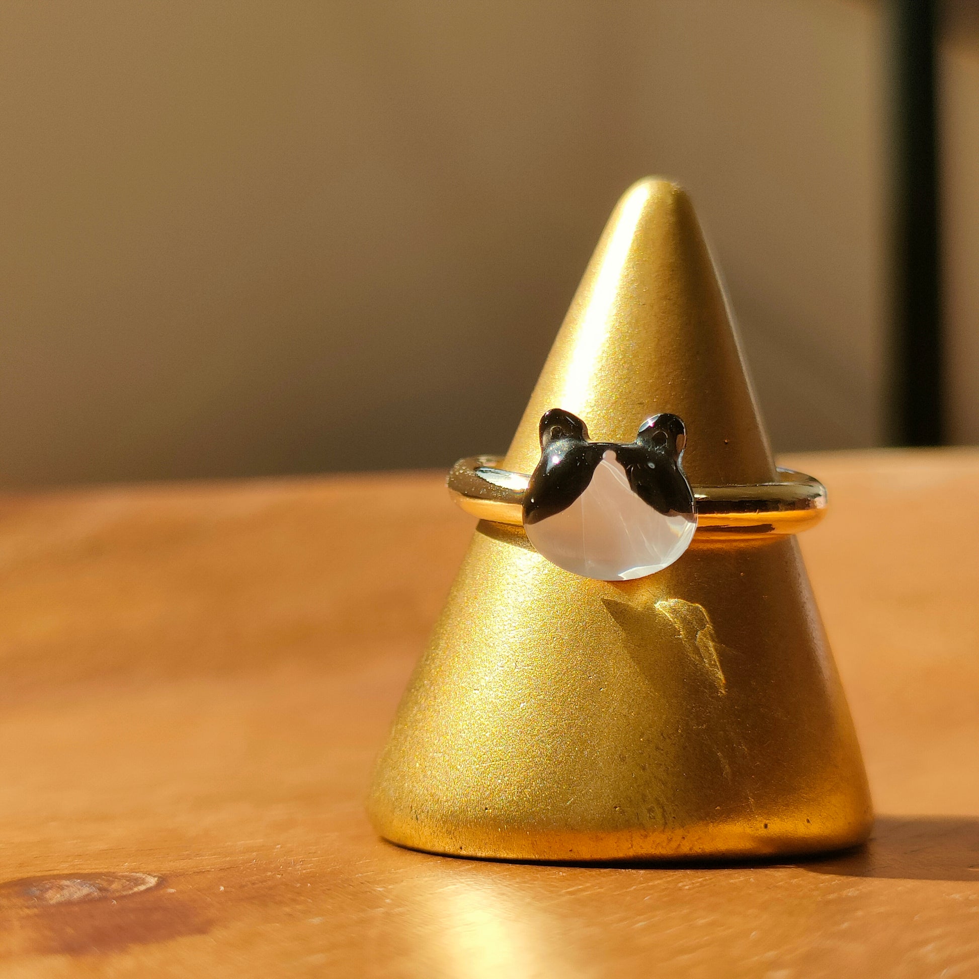 ガラスで作られた愛らしい顔は、小さな耳とぷっくりしたフォルムがチャームポイントです。