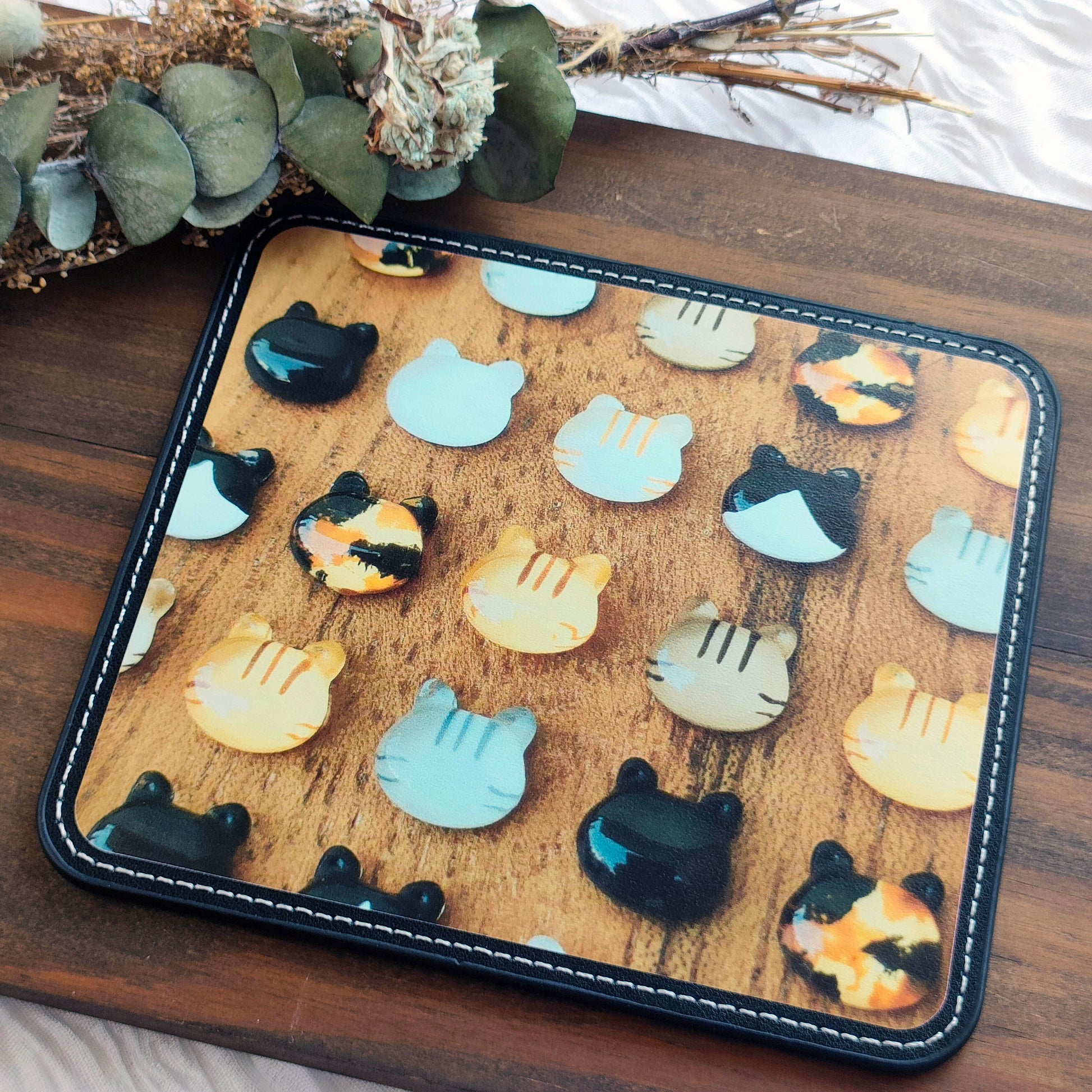 ブラックベースにシックな猫たちが印刷されたデザインは、男女問わず使いやすく、職場やご自宅のデスクにぴったり。