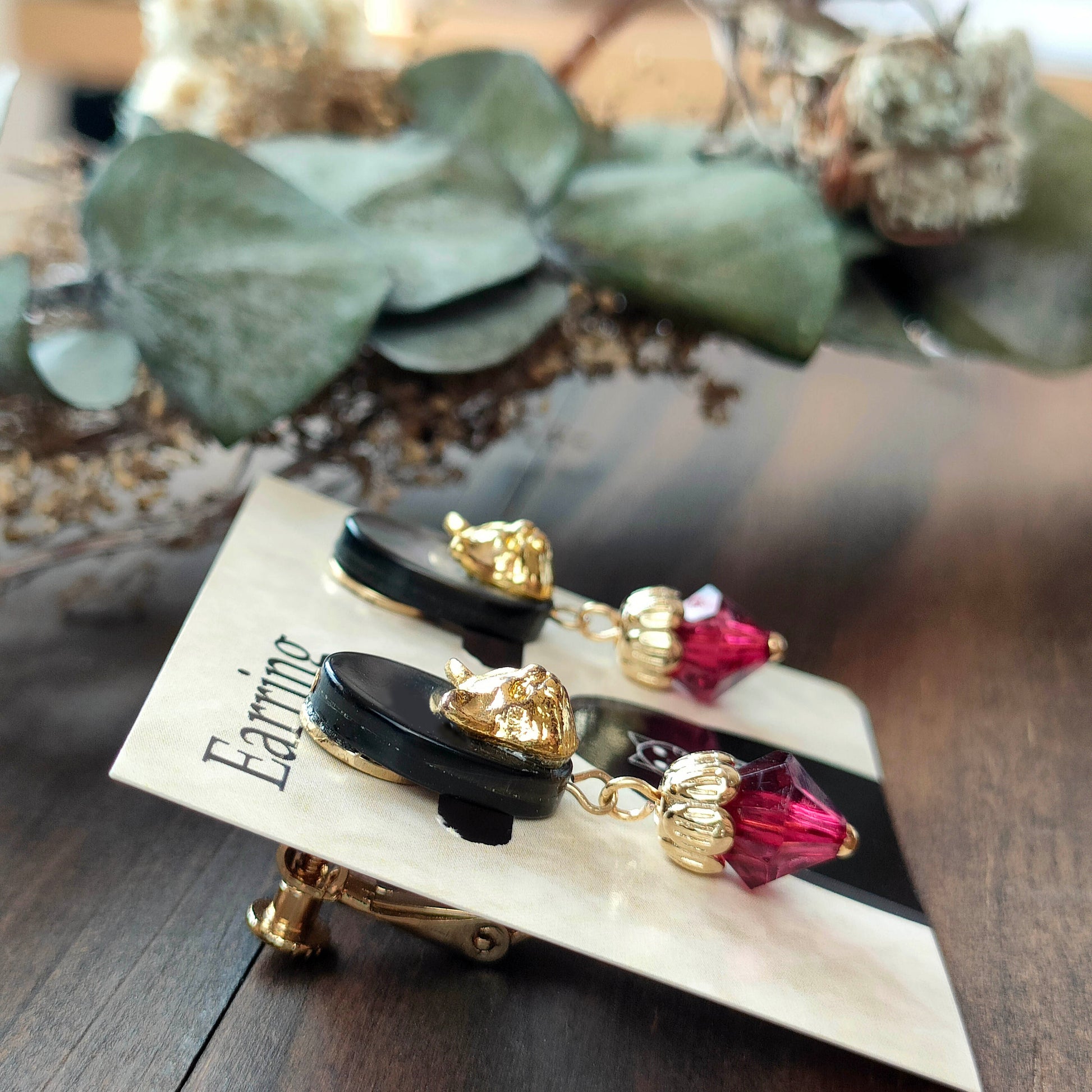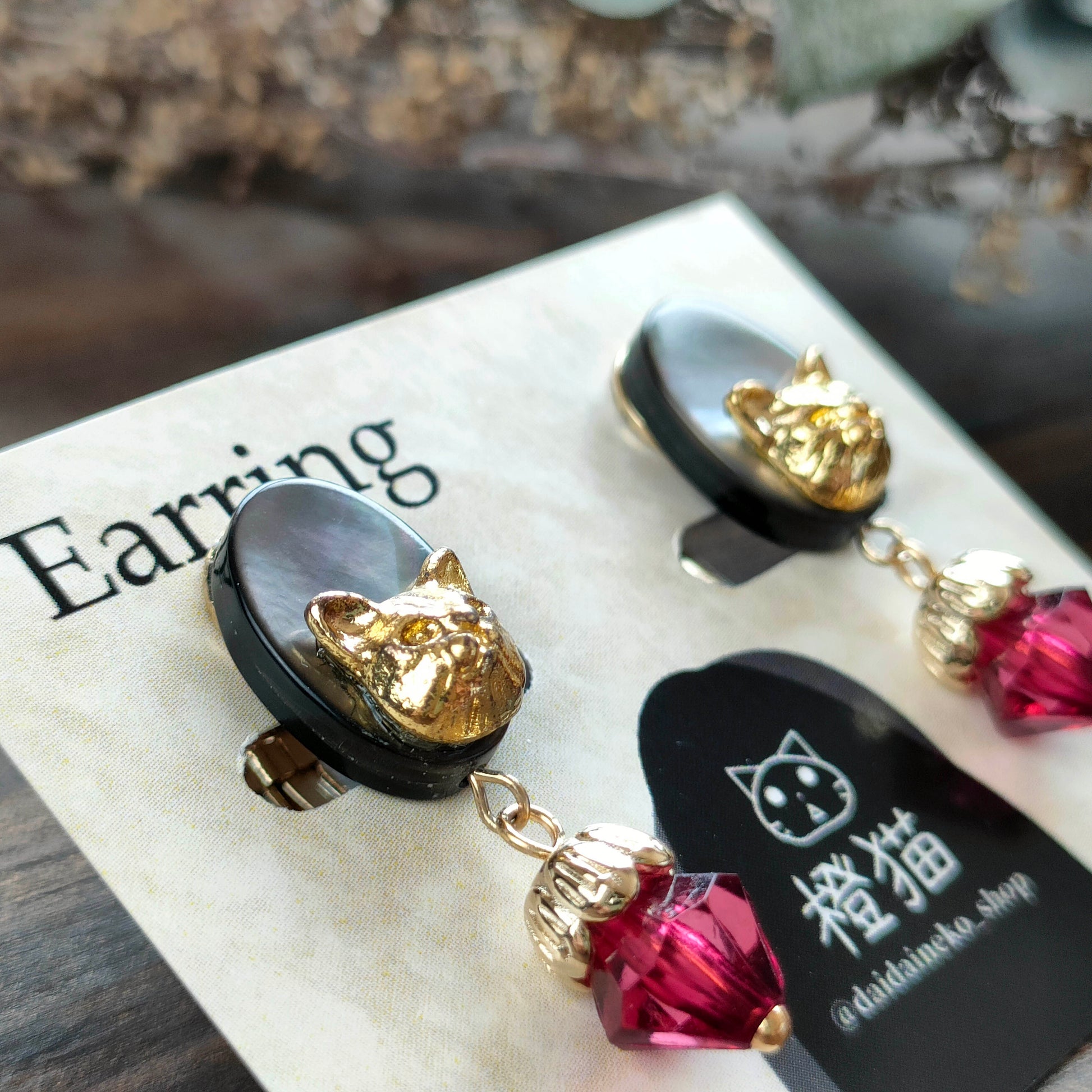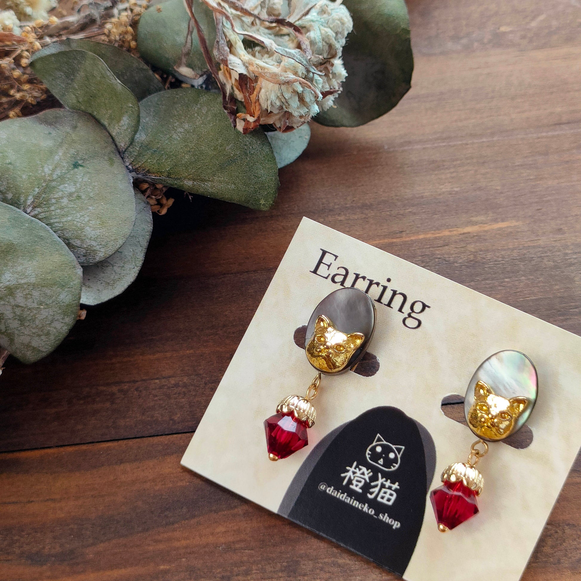 魔女の使い魔が、炎の魔力を閉じ込めた宝石を持ってきてくれました。黒蝶貝を使った、アンティーク調のシックな仕上がりです。10月限定。
