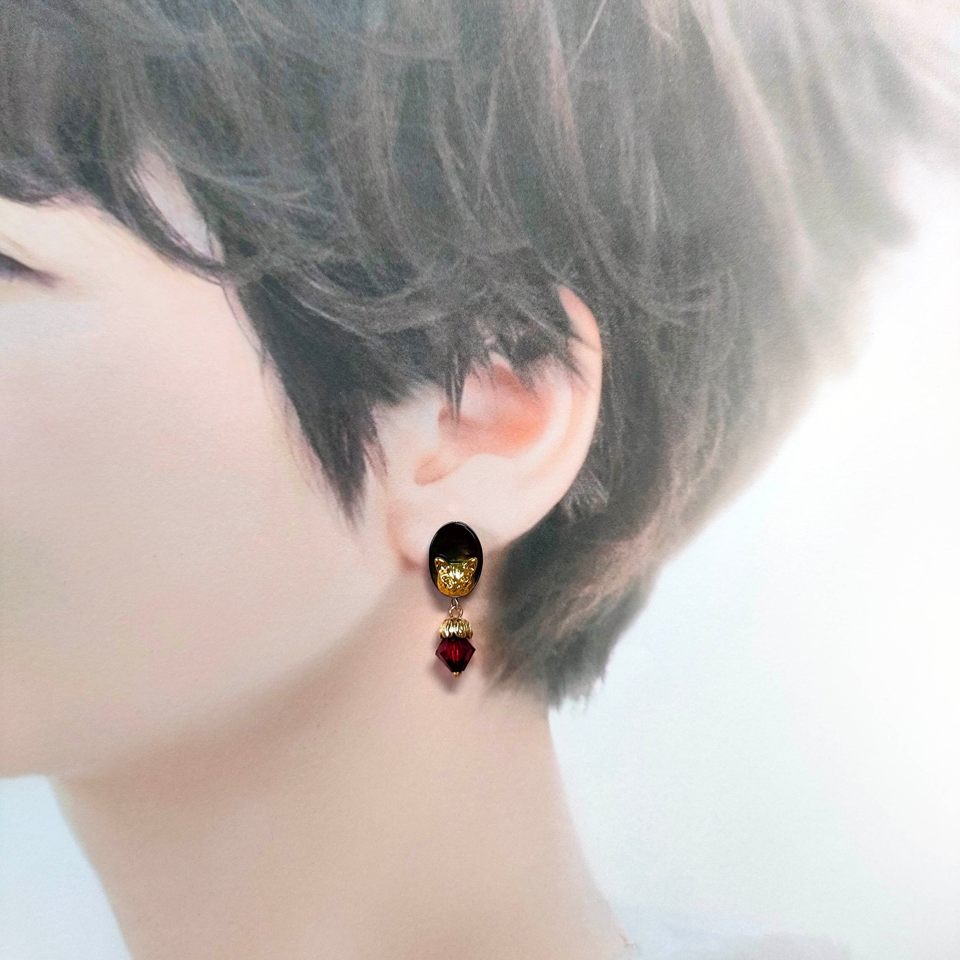ハロウィン限定、黒猫のモチーフアクセサリー「黒猫と炎の魔石」。