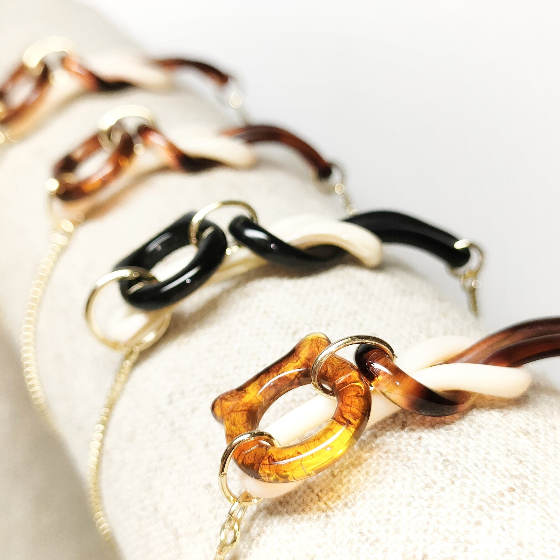 猫の色を持ったパーツが、数十年の時を越えて目の前にある――そんな不思議な運命を感じて連れ帰り、このブレスレットが誕生しました。