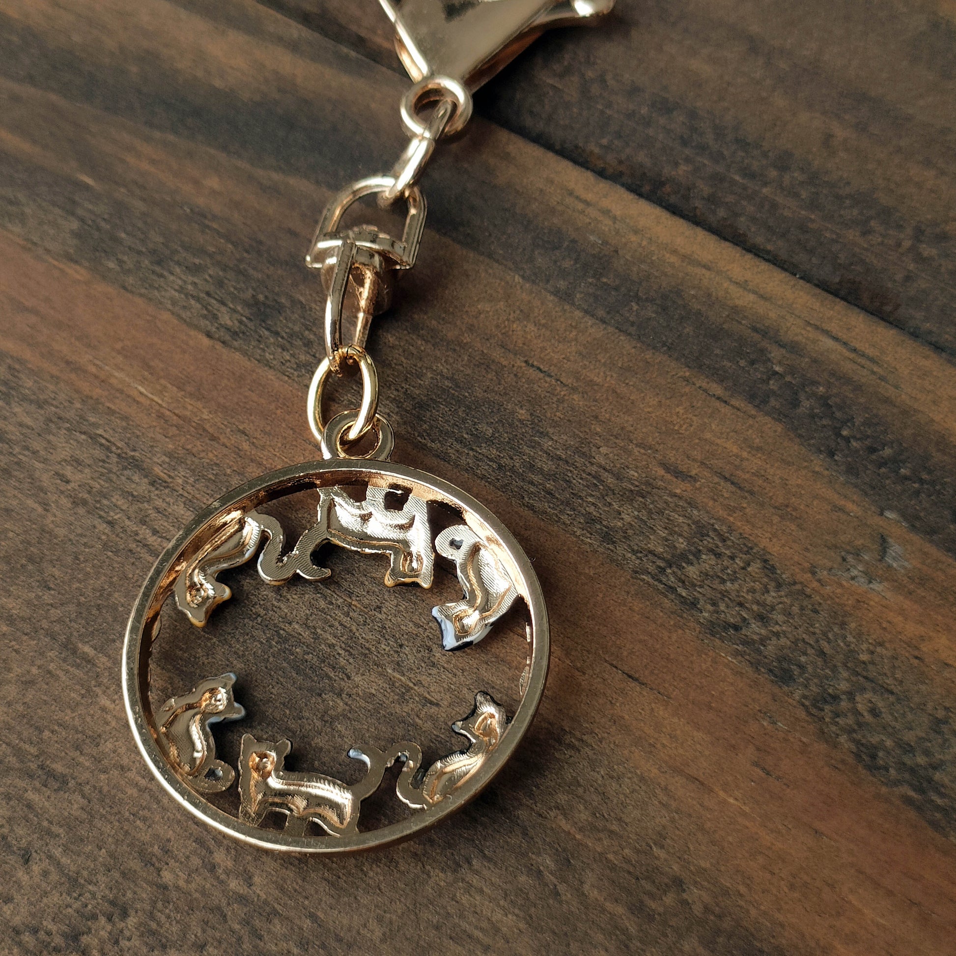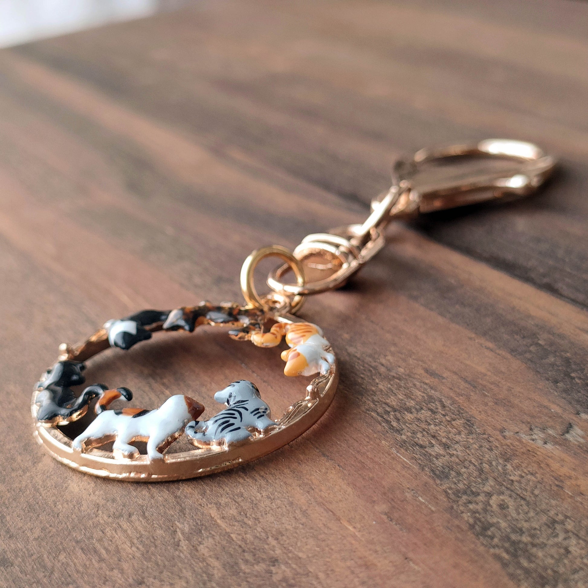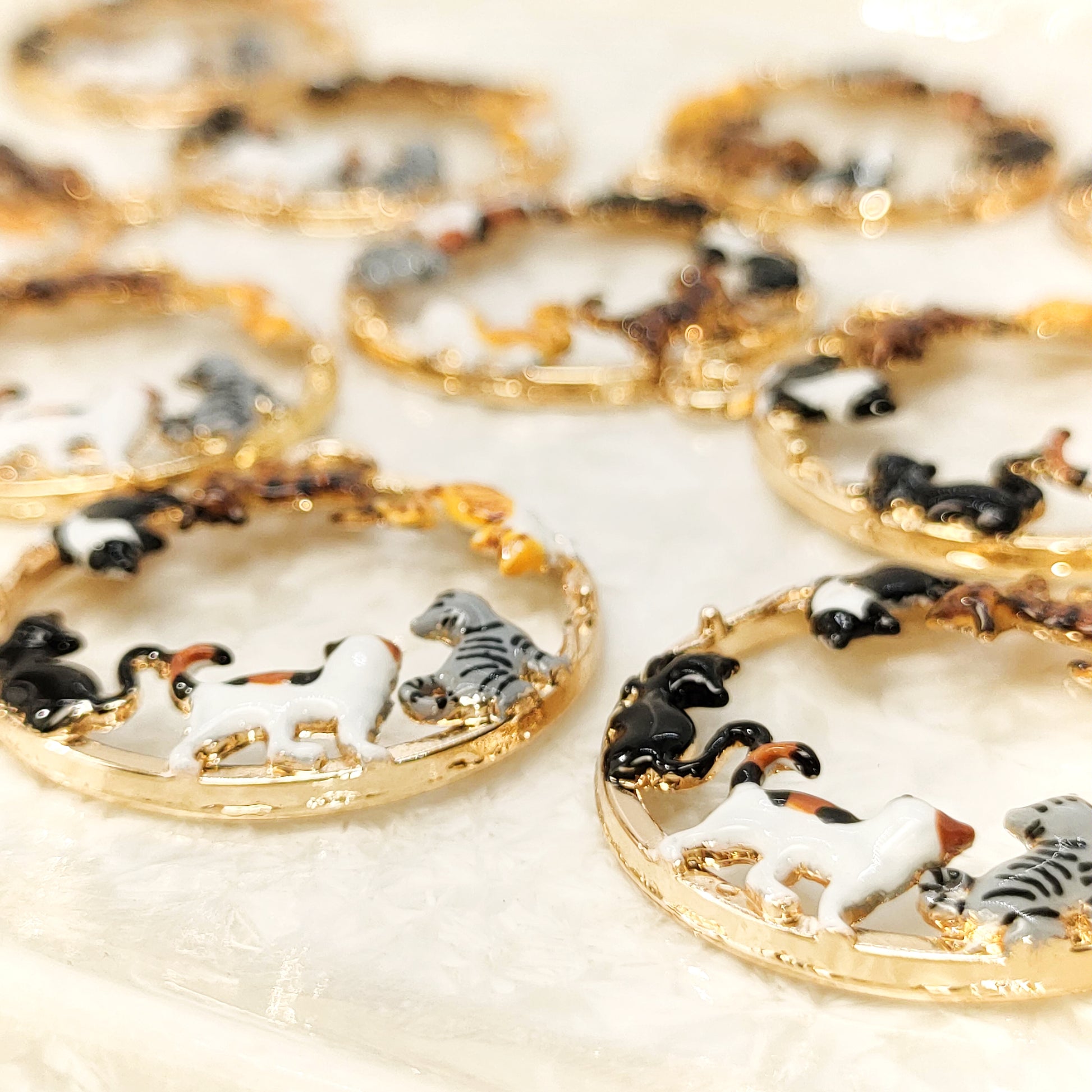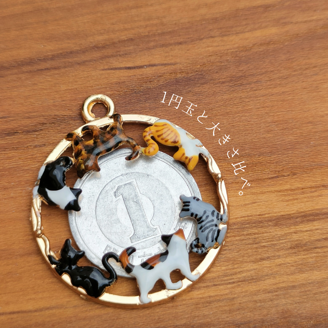 性格も大きさも種類も異なる猫たちが、ゆるやかな円を描きながら、一定の距離を保って佇んでいる。猫好きにはたまらないイベント。そんな幸せな集会をアクセサリーにしました。