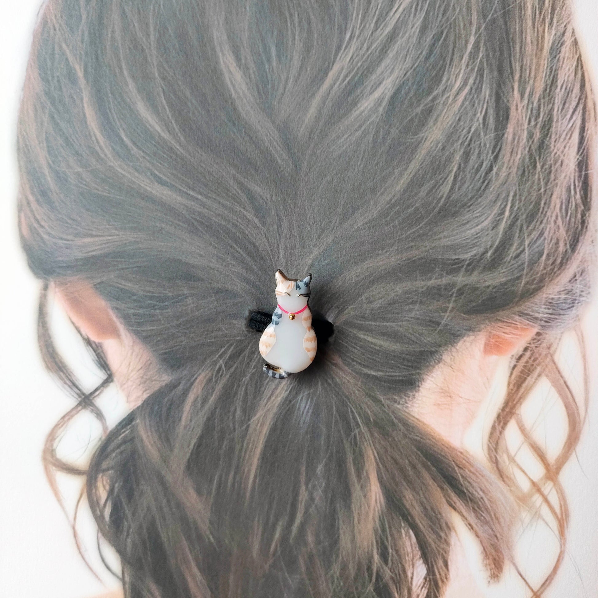 幸せそうな猫のまどろみをヘアゴムにしました。見ているこちらまでうとうとしてしまいそうな穏やかな表情。鏡に映るたび、ふっと肩の力が抜けるような作品です。