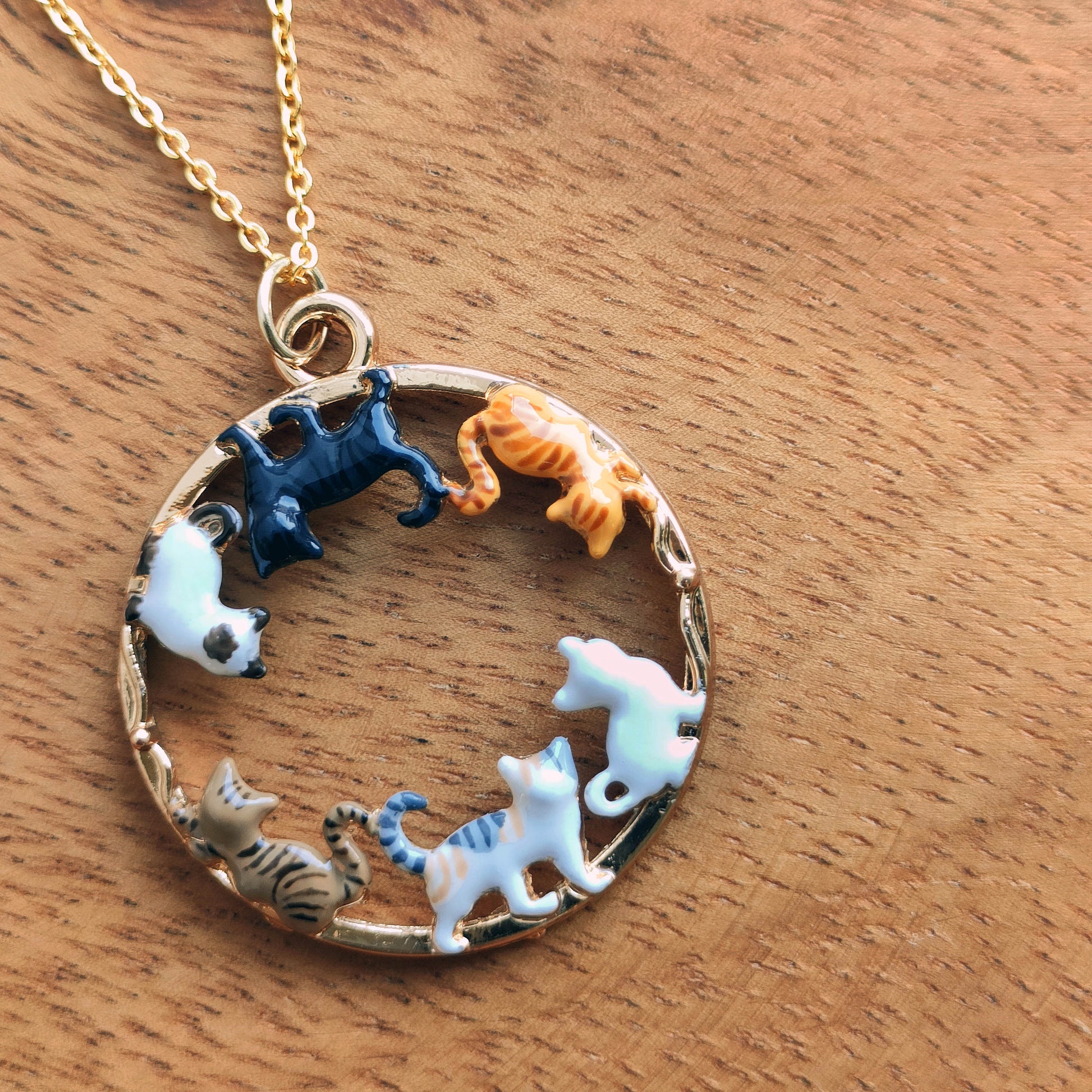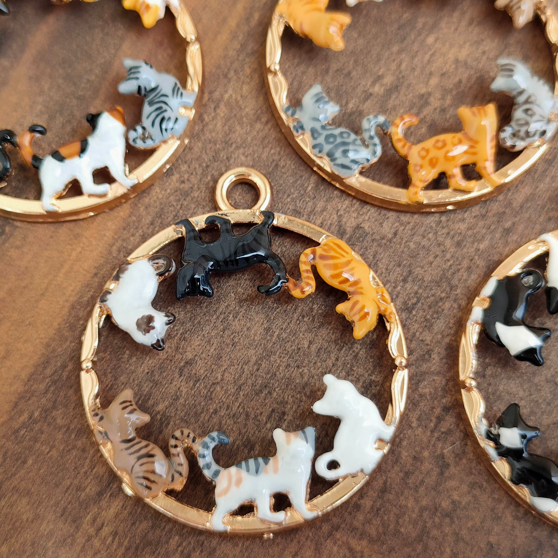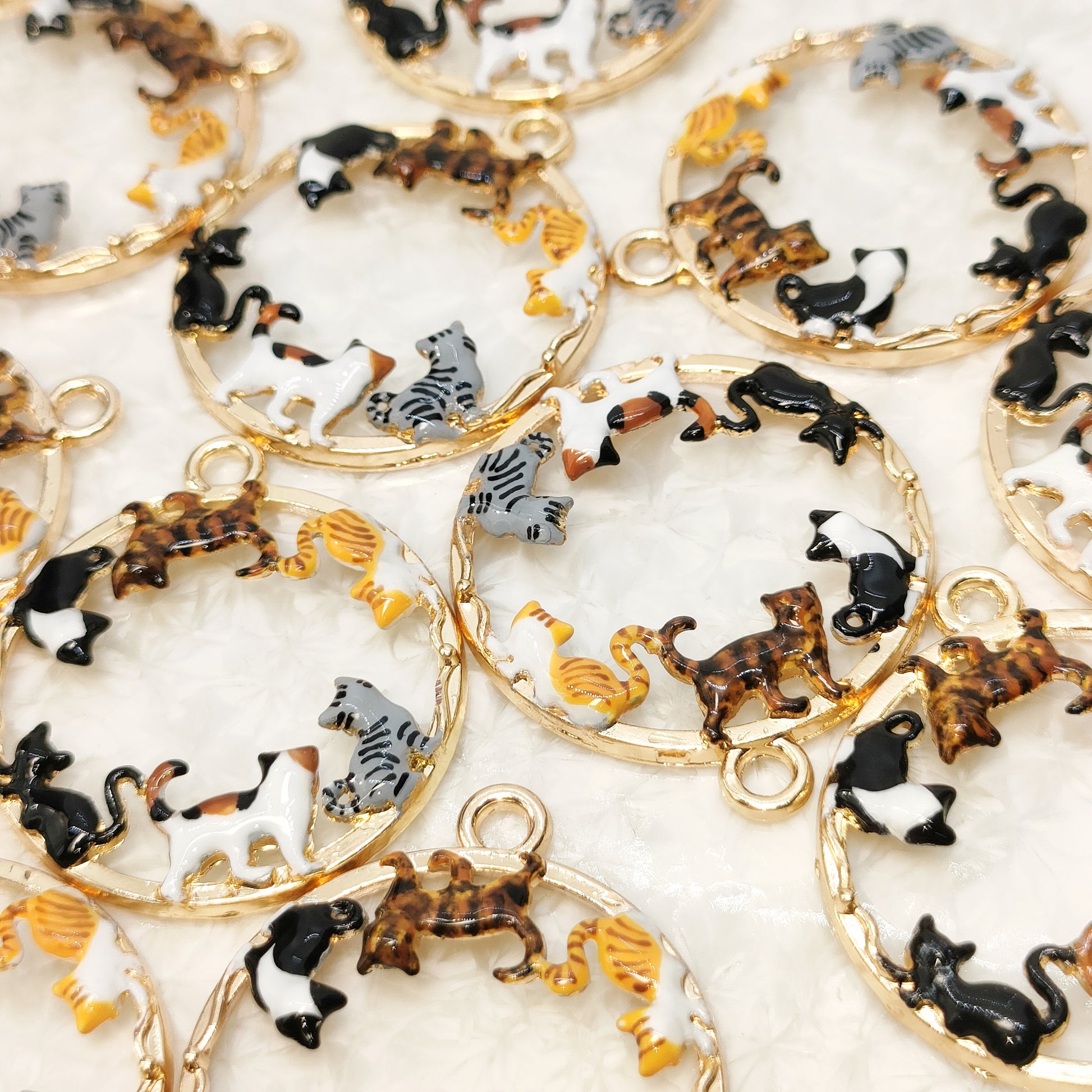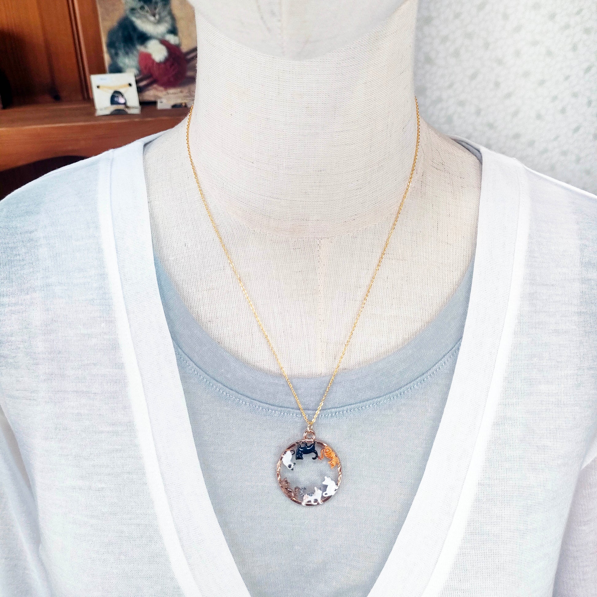 性格も大きさも種類も異なる猫たちが、ゆるやかな円を描きながら、一定の距離を保って佇んでいる。猫好きにはたまらないイベント。そんな幸せな集会をアクセサリーにしました。