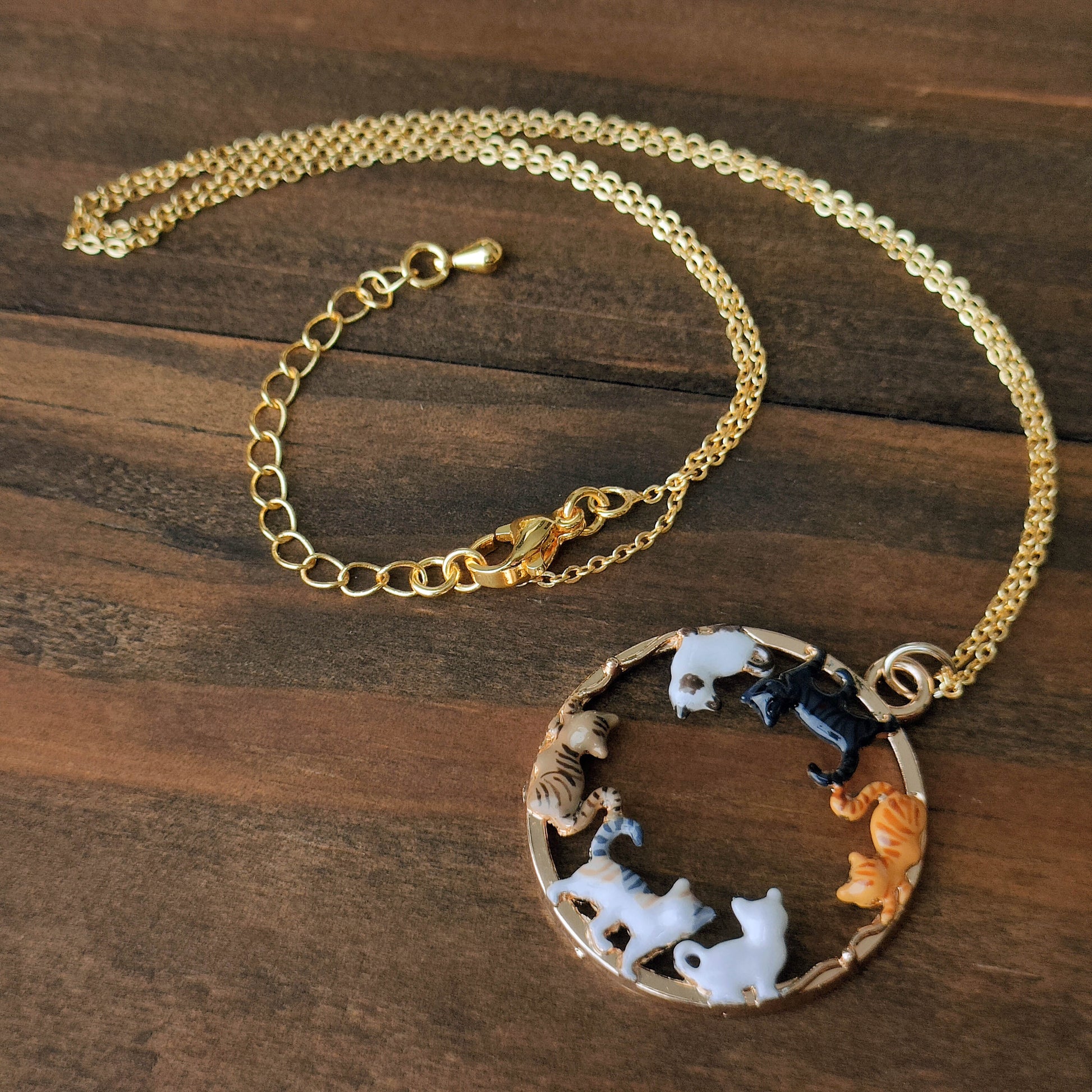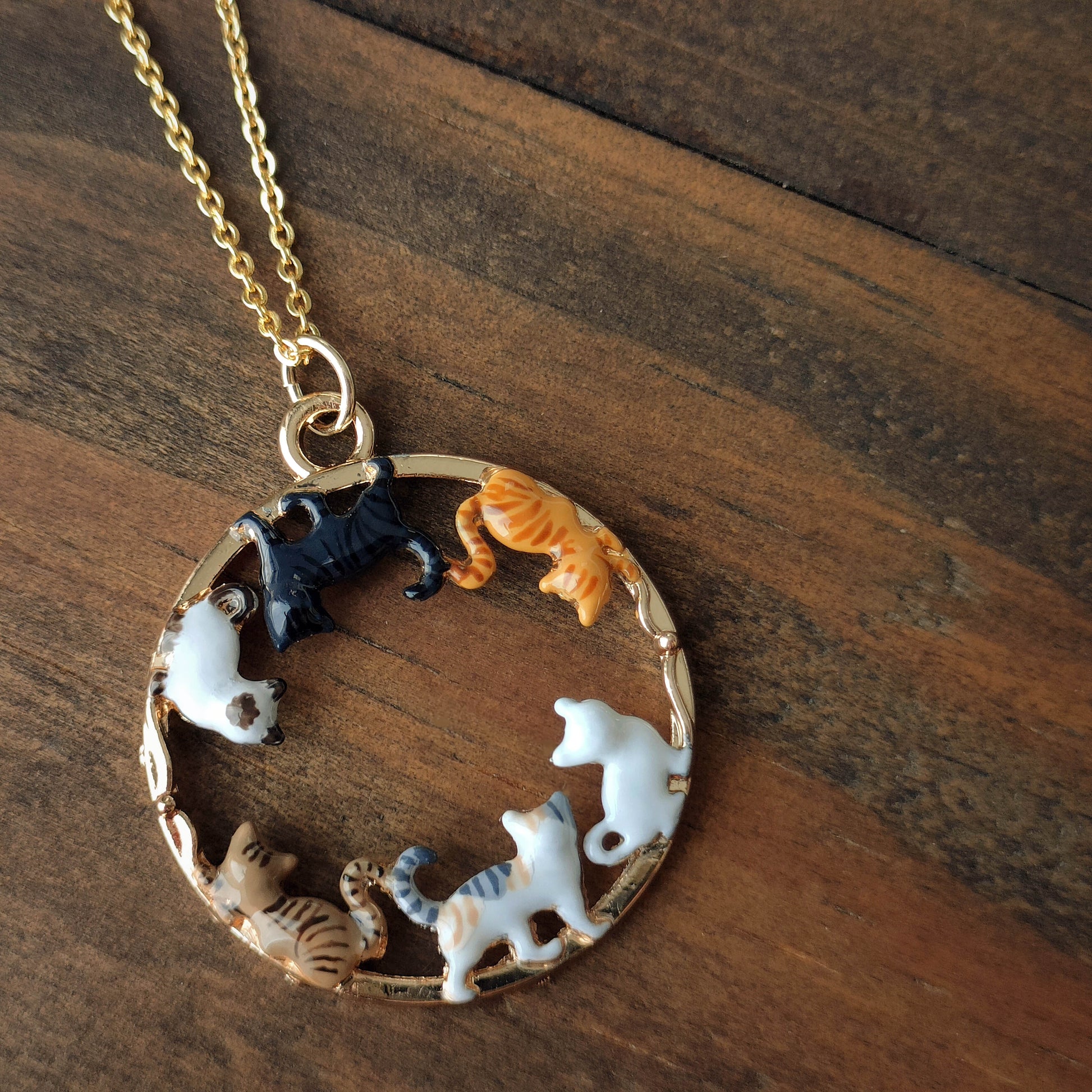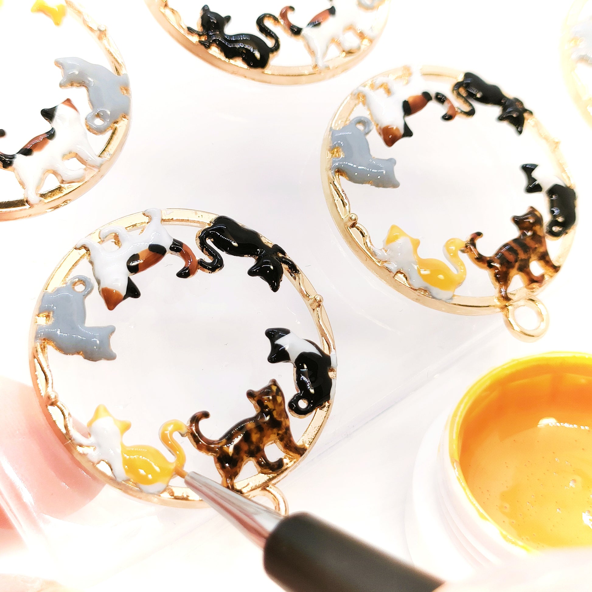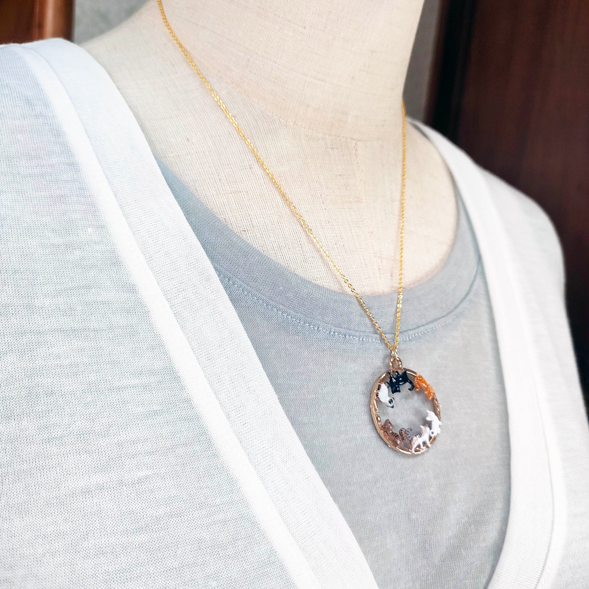 性格も大きさも種類も異なる猫たちが、ゆるやかな円を描きながら、一定の距離を保って佇んでいる。猫好きにはたまらないイベント。そんな幸せな集会をアクセサリーにしました。